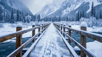 Snow Covered Wooden Bridge Videos