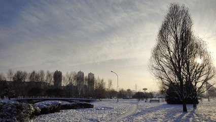 snowy cityscape