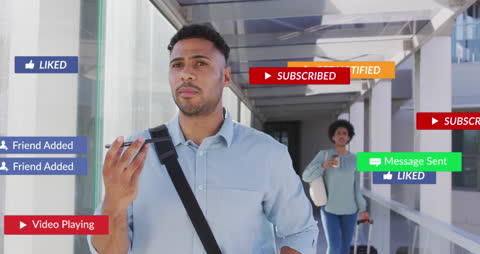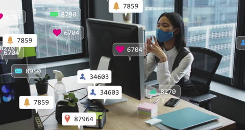 Social Media Notifications Surrounding Masked Businessman Using Laptop Videos