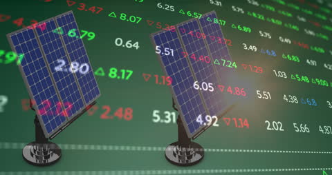 Solar Panels With Trending Stock Market Data Overlayed Videos
