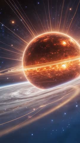 Spectacular Ringed Lava Planet In Majestic Space Scene Videos