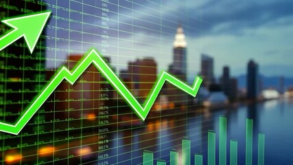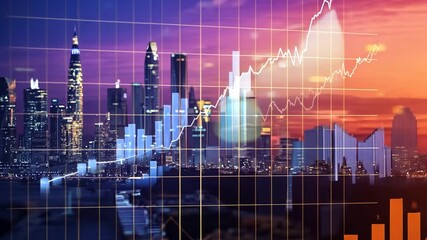 Statistical Data Overlay On Cityscape Background Videos