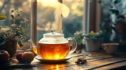 Steaming Hot Beverage In Rustic Setting By Window Videos