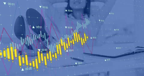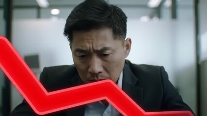 Stressed Businessman In Office With Financial Graph Overlay Videos