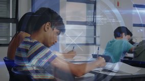 Students Engaged In Digital Learning With Scientific Data Overlays Videos