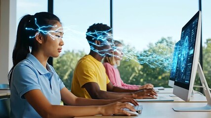 Students Engaged With Digital Network Interface Technology Videos