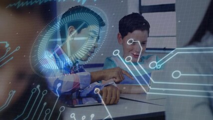 Students Engaged With Tablets And Digital Learning Overlay Videos