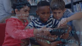 Students Exploring Digital Technology With Interactive Tablet Learning Videos