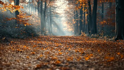 Sunlight Streaming Through Trees On Autumn Forest Path Videos