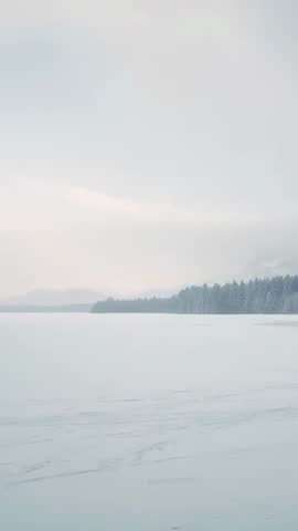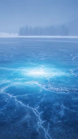 Sunlit Mist Panning Over Frozen Lake Slab With Dripping Icicles Conifer Forest Backlight Videos