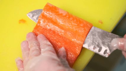 chef cutting salmon
