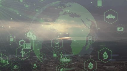 Sustainability Technology Icons Overlay On Server Systems Videos
