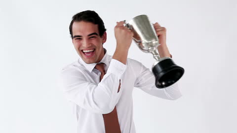 holding trophy