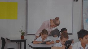 Teacher Assisting Student With Educational Graph Overlays Videos