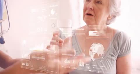 Teacher Helping Student With Laptop In Futuristic Data Overlay Videos