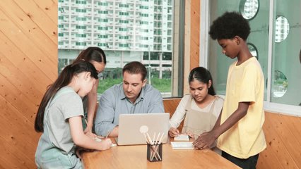 Teacher Observing Students In Tech Enhanced Classroom Videos