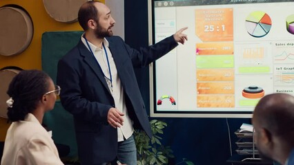 Team Analyzing Data With Interactive Infographics In Office Videos