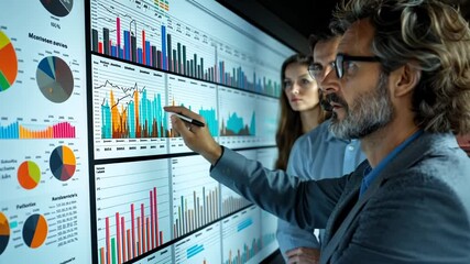 Team Analyzing Financial Data On Interactive Screen Videos