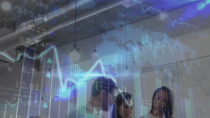 Team Analyzing Financial Data With Global Metric Graphics Overlay Videos