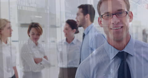 Team Collaborating On Financial Data Overlay In Modern Office Videos