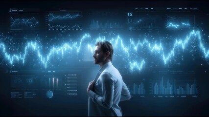 Team Collaborating On Financial Strategy With Digital Stock Visualization Videos
