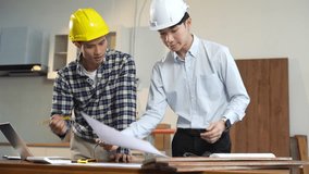 Team Collaborating Over Blueprints With Digital Interface Overlay Videos