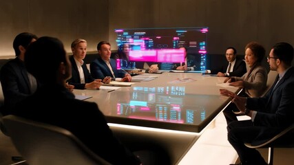 Team Collaborating With Futuristic Data Interface In Office Videos