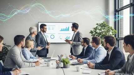 Team Collaborating With Futuristic Data Overlay Videos