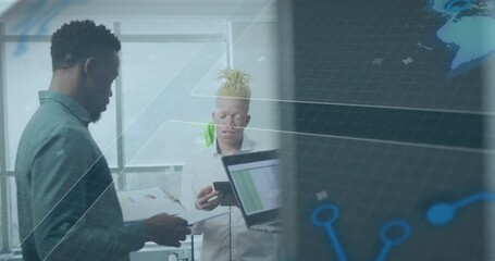Team Collaboration In Modern Office With Business Data Overlay Videos