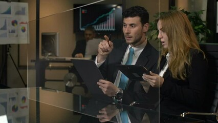 Team Evaluating Financial Data In Futuristic Office Videos