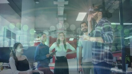 Team Experiencing Virtual Reality With Network Overlay Videos