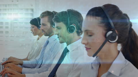 Team Of Professionals Typing In A Futuristic Office Setting Videos