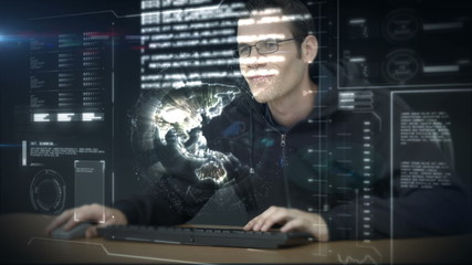 Tech Focused Businessman Analyzing Digital Data On Global Interface Videos