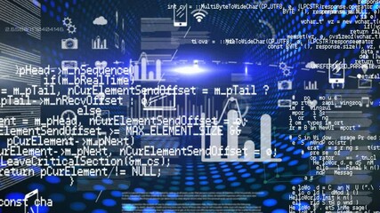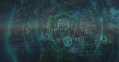 Tech Icons And Data Processing Over Digital Tunnel Videos