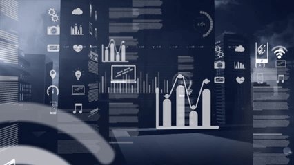 Tech Infographic Interface Over Cityscape Background Videos