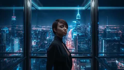 Tech Overlay On High Rise Skyline Visualizing Big Data Interaction Videos