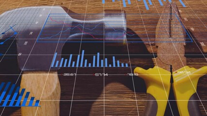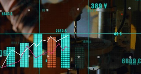 Tech Overlay With Data Graph On Industrial Surface Videos