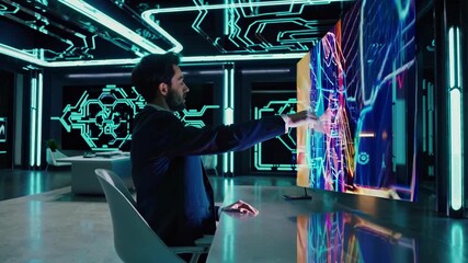Tech Professional Engaged With Digital Interface Network Visualization Videos
