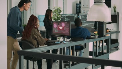 Tech Professionals Collaborating With Digital Security Visuals Videos