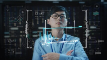 Technical Support Engineer In Data Center With Holographic Interface Videos