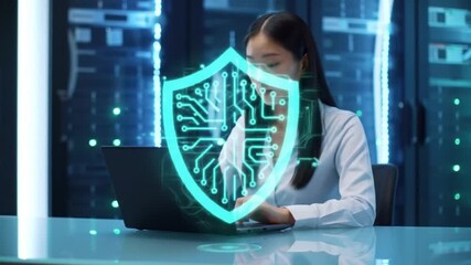 Technician Analyzing Data Servers With Digital Overlay Videos