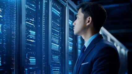 Technician Analyzing Server Rack In Data Center Environment Videos