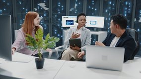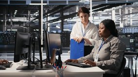 Technicians Collaborating In Data Center Server Room Videos