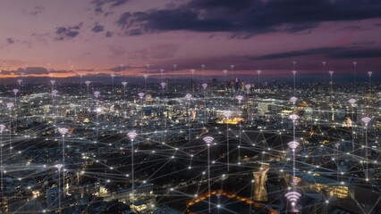 Technology Concept With Cityscape And Abstract Elements Videos