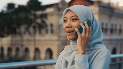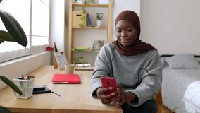 Technology Connection Concept With Headscarf Woman Using Smartphone Videos