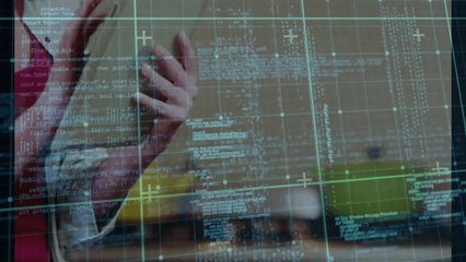 Technology Executive On Call With Binary Code Overlay Videos