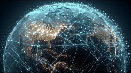 Technology Network Animation With Cloud And Globe Themes Videos