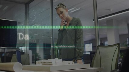 Thoughtful Architect Analyzing Blueprint With Data Overlay Videos