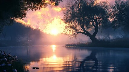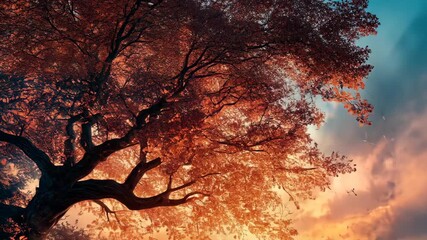 Trees Silhouette Against Vibrant Sunset Background Videos