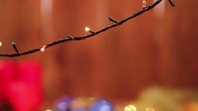 Twinkling Christmas Lights On Rustic Wooden Surface Videos